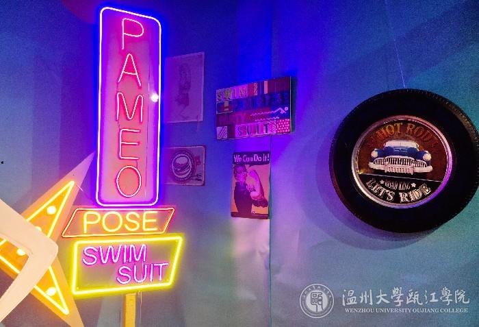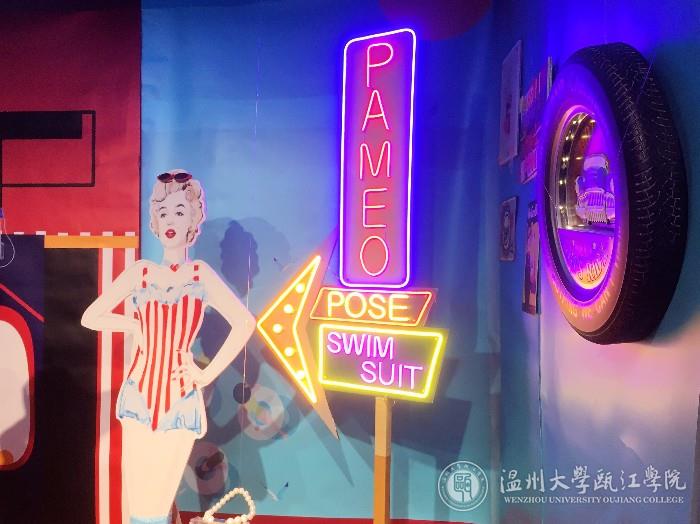 (灯光、?彩、材料)来创造美国复古的主题品牌橱窗配饰。?彩上,将采??饱和度的复古对??,