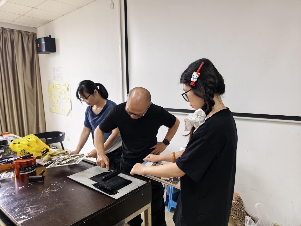 2025年7月6日-7月17日,浙江省中小学教师《版画艺术创作》培训班在我院顺利举办。分别来自杭州市、宁波市、丽水市、温州市等12位学员在此接受为期十二天的版画相关学习实践。