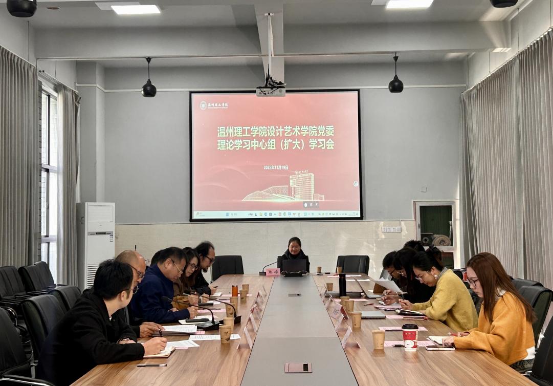 11 月 19 日上午,温州理工学院设计艺术学院党委理论学习中心组(扩大)学习会在2B教学楼 110 会议室召开,学校党委委员、宣传部部长林盛光到会指导,会议由学院党委书记、院长刘明刚主持。