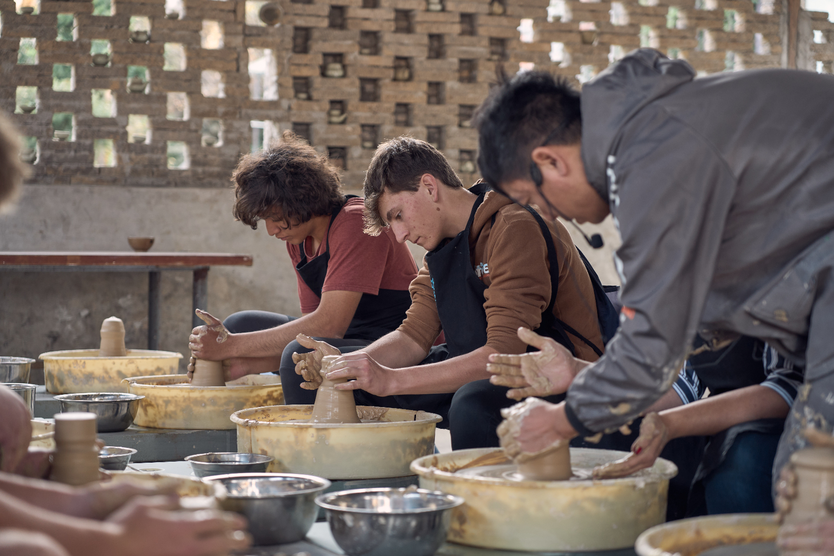 研学队伍走进温州陶山龙窑遗址,漫山窑址印记着千年制瓷史的痕迹。沿着窑道漫步,非遗传承人讲述龙窑依山而建、柴火烧制的古老工艺。在瓯窑博物陈列室,美国青少年触摸体会瓯窑的起源、兴盛与衰退,观察残片上留存的釉色肌理,仿佛穿越时光见证昔日窑火鼎盛的场景,陈列室里的一砖一瓦、一器一物,都成为鲜活的文化课堂,让大家领略瓯窑的历史脉络与非遗传承的坚韧力量。最受期待的瓯窑制作体验环节,研学队伍中的每一个人均化身“陶艺师”,围坐操作台旁开展实践。大家揉泥、拉坯、塑形,掌心托着柔软陶泥,随着拉坯机缓缓转动,指尖轻轻按压、提拉,松散的陶泥渐渐勾勒出杯、碗的雏形,尽情释放创意与想象。一位美国青少年谈到:“指尖沾满陶土,心间盛满热爱,这种体验让我感觉是在与中国的传统文化进行亲密的对话。”